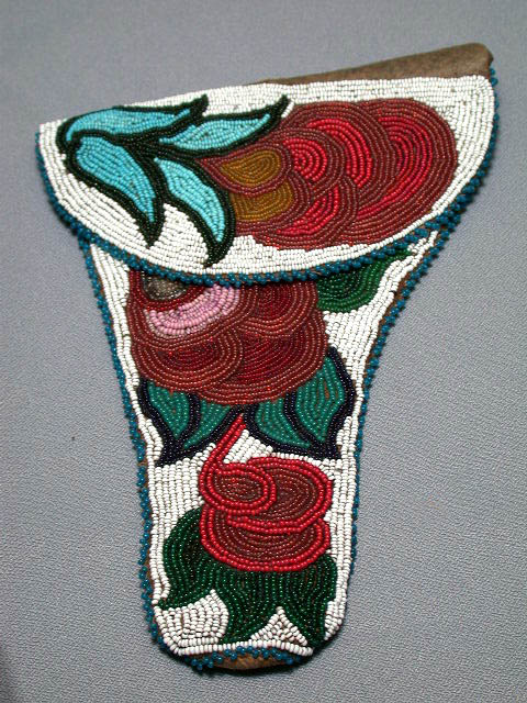Weapon holder, Anishinabe/Ojibwa [Chippewa], Leather, glass beads, cotton, ceramic button, ca. 1825 to 1860